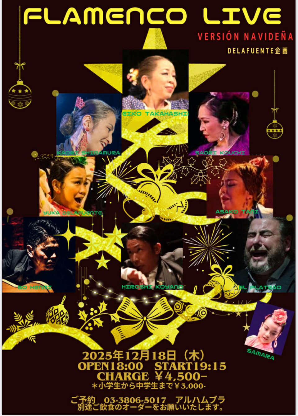 今回のクリスマスバージョンは、ちょっとその、スペインのポピュラーなビジャンシーコをもっと歌いたいと企画の由香さんと話しています。今回も由香ファミリーが登場、ご主人のパコ・プラテアオの唄で豪華出演者の踊り、そしてお嬢さんのサマラちゃんも踊ります。歌かな?今から楽しみです。